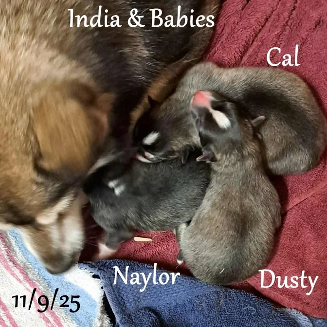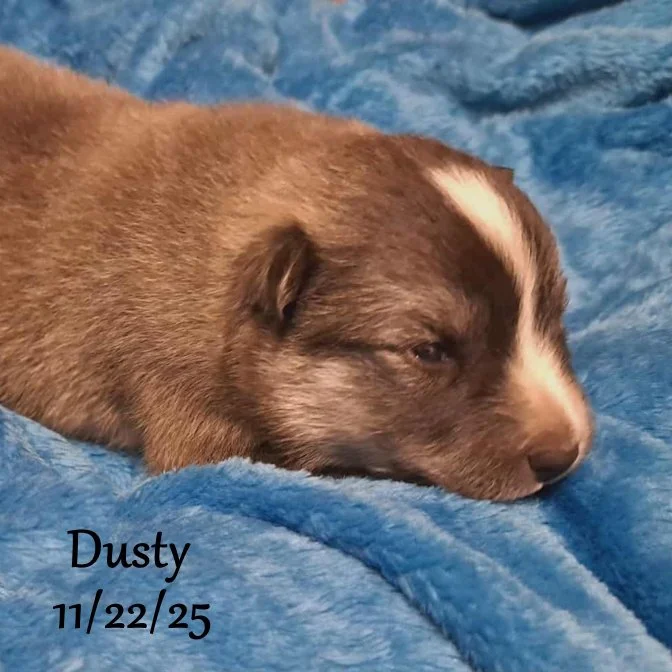 “DUSTY” is another little chunkster. Beautiful Mini Husky coloring with a very prominent white blaze on hid precious face. Tammy and her daughters feel very confident that these three puppies are going to make great ESA dogs. Stay tuned while we all watch them grow and develop their individual personalities.