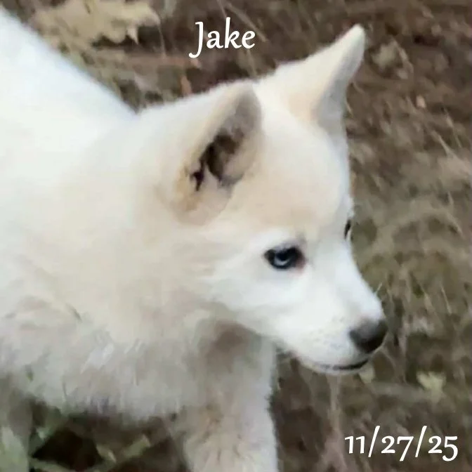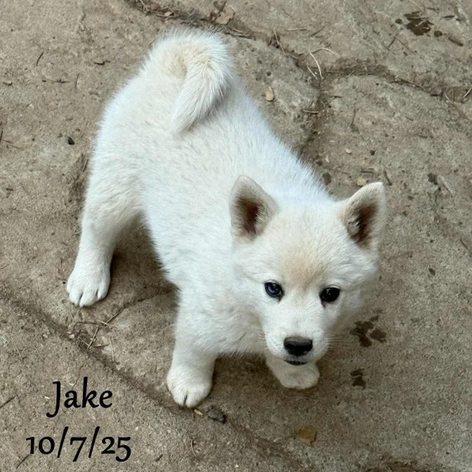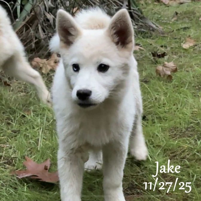 Jake is super handsome! He is a BIG boy. Above the average size for our pups. A lot of people actually prefer this bigger size. He is a very light gold/cream color, with brown eyes. His right eye has a blue fleck at the bottom which actually looks really cool and unique. He is very cautious of strangers but warms up if you have yummy treats.